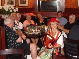 She won’t clean the house, but she will entertain! She jokes, sings, plays accordion, draws a caricature of the birthday person and there might even be a can-can finale!